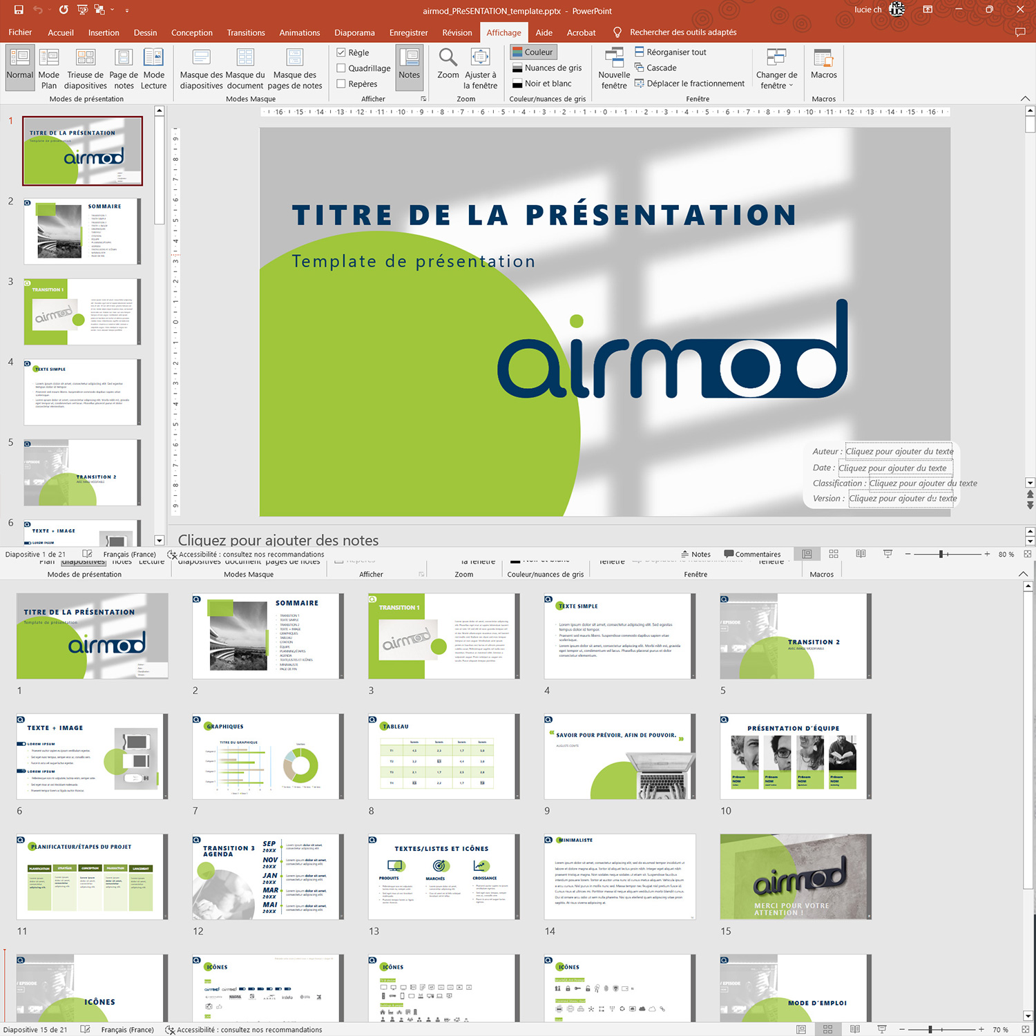 - le template Powerpoint
