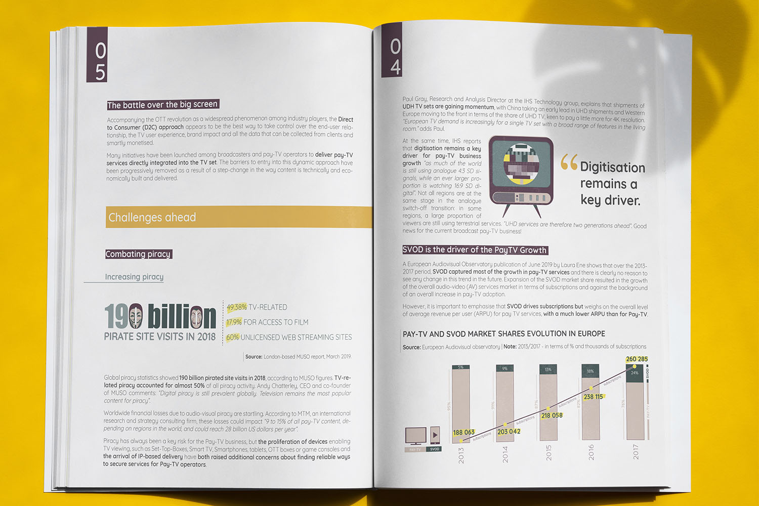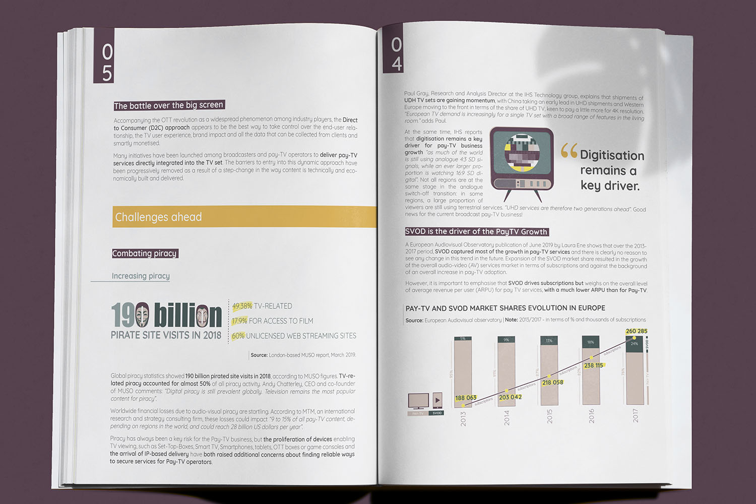 Qu’il s’agisse de livre blancs, de catalogue produits, de magazine ou de rapport d’activité j’aime particulièrement ce genre de projet car il mêle PAO et création d’illustrations. La combinaison de ces deux éléments permet en effet d’assurer un document au design uniforme (pas un assemblage d’éléments glanés à droite à gauche) et de lui donner un « look » à part entière.